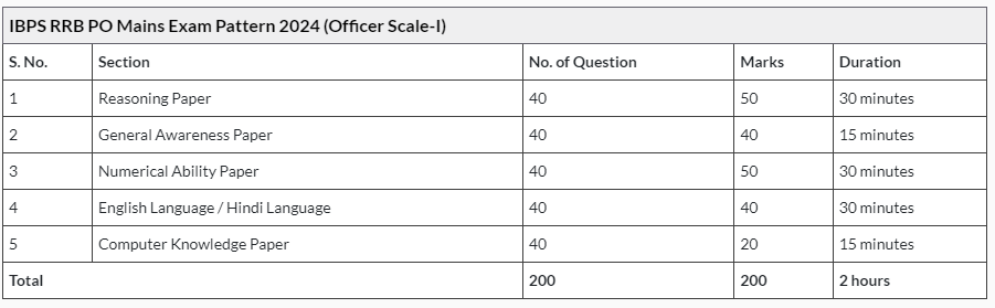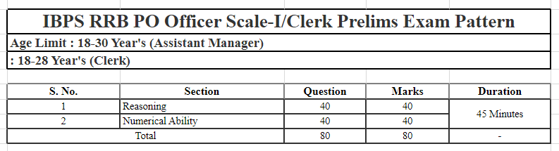 IBPS RRB PO Officer Scale-I Prelims Exam Pattern
